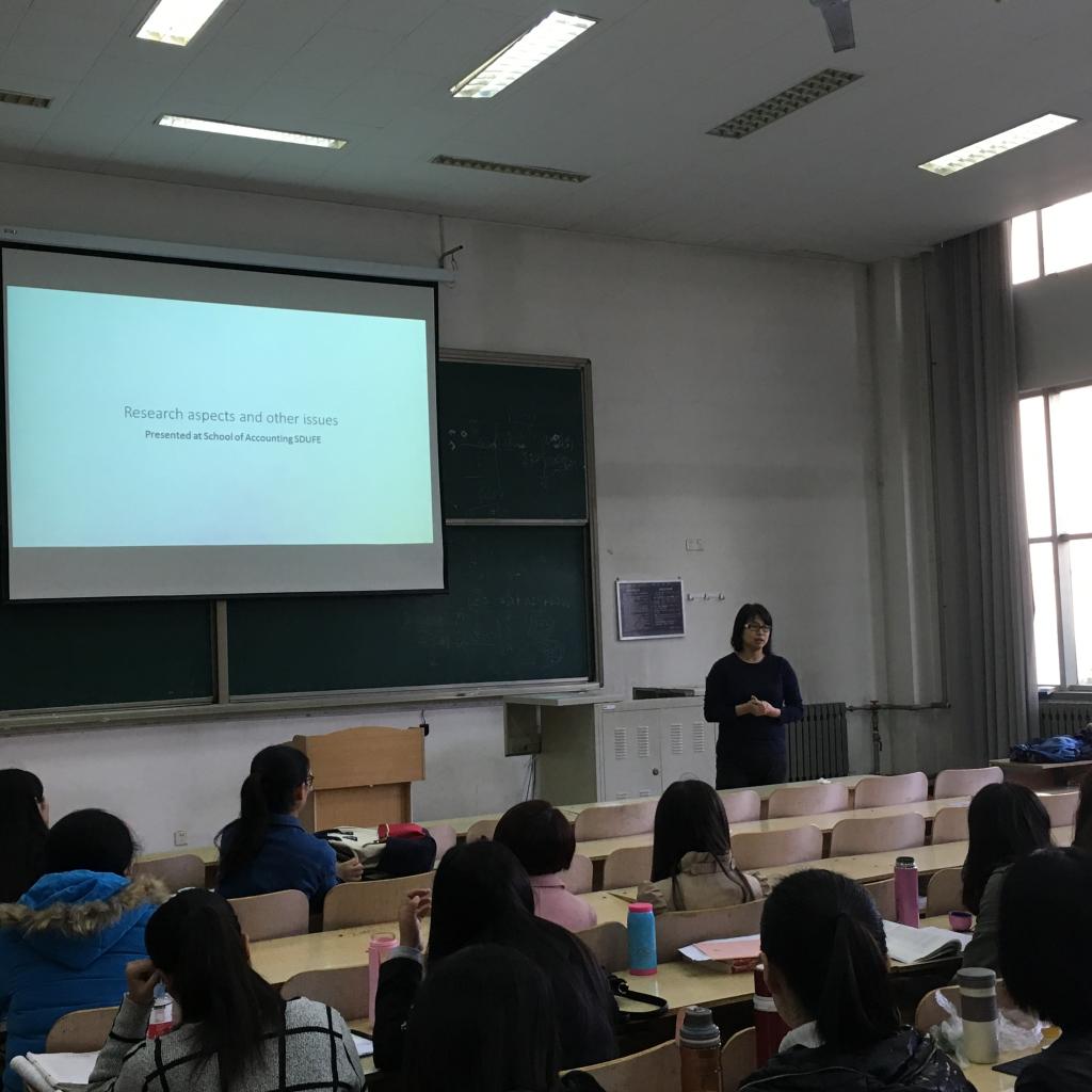 11月4日下午,山东财经大学会计学院邀请在澳大利亚迪肯大学任教近十年的刘莉博士为2016级全体研究生做了以“我的会计观”为主题的讲座,与同学们分享了自己的求学经历并深入探讨了对于财务会计的认识。此次学术沙龙活动也是“课程国际化项目”的重要组成部分,目的在于促进会计学院研究生教育的国际合作与交流。