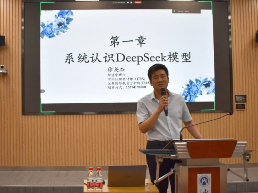 讲座伊始,徐教授以养老行业管理软件开发案例为切入点,阐述了大模型对各行业产生的深远影响。随后,他以DeepSeek模型为例,系统介绍了AI大模型的发展历程与推理基础。通过烟草公司预算制定案例,直观展示了大模型的应用价值,围绕大模型在推理过程和数据处理方面的应用展开讨论,深入剖析其在推理逻辑构建和数据处理方面的技术特点,凸显其从数据中自我学习、挖掘规律的优势。
