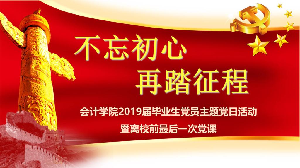 6月20日下午,在建党98周年来临之际,正值19届毕业生离校前夕,会计学院党委组织了主题为“不忘初心,再踏征程” 毕业生党员主题党日活动暨离校前最后一次党课,以新颖难忘、内涵深刻的活动形式为19届毕业生送上母校的祝福与嘱托。活动由学院党委副书记崔东峰主持,学院党委领导班子和全体毕业生党员参加了活动。