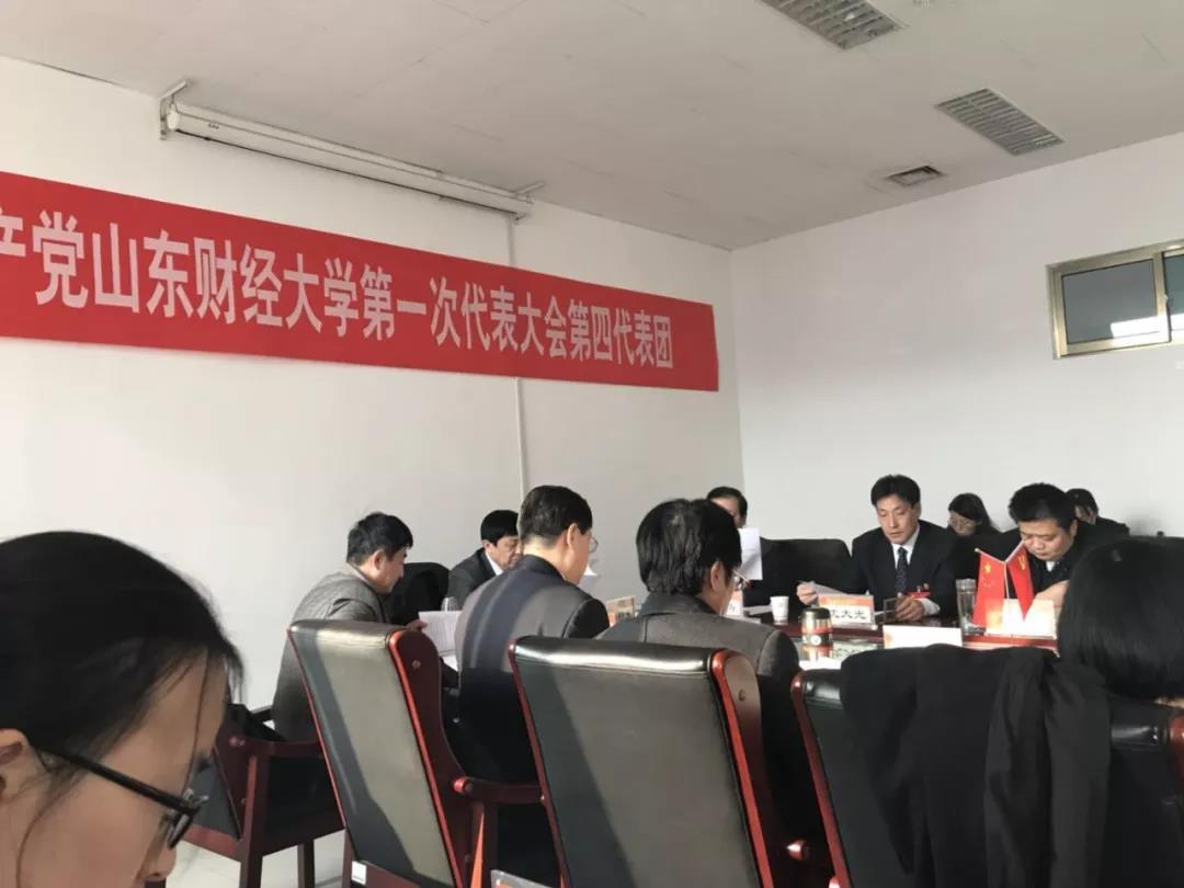 中国共产党山东财经大学第一次代表大会于2017年12月28日和29日在燕山校区举行。会计学院党代表所在的第四代表团召开三次代表团会议。在代表团会议中,会计学院党代表积极讨论、建言献策。