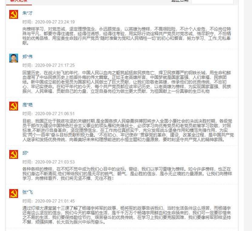 正值国庆来临之际,为走近新中国成立前入党的老党员,聆听老英雄故事,教育引导广大党员珍惜来之不易的美好生活,致敬老英雄、学习老英雄,会计学院党委按照学校党委统一部署,要求各党支部自行组织收看“灯塔大课堂”第十三课,各党支部反响热烈。