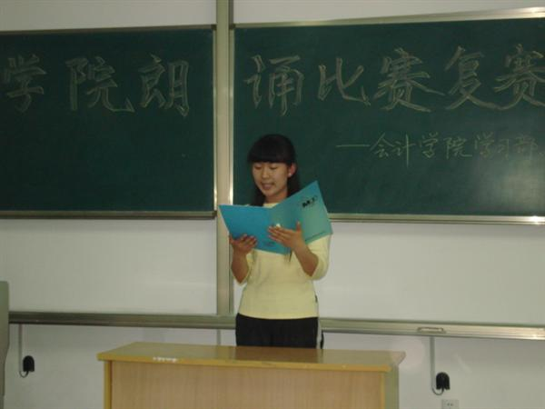 4月17日晚,由会计学院学习部、社团部举办的朗诵比赛复赛在明水校区隆重举行。与以往朗诵比赛不同的是,参赛选手们不仅朗诵诗歌,而且还献上精彩的个人才艺表演。这成为此次比赛的一大亮点。