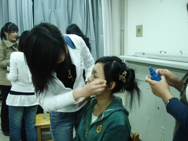 一袭墨黑色的和服,头戴藏蓝色碎花古典折扇,宛若从日本动漫书中走出的人物;高耸的发髻,淡淡的鹅黄加上如天空般蔚蓝的迷人眼影;俏皮的鸭舌帽加上有些桀骜不驯的可爱卷发……当你置身于这样得一群女孩当中时,一定会有一种同春天约会,与美丽赴宴的感觉。不错,这次我院的彩妆大赛就是这样一次与美丽的约会。