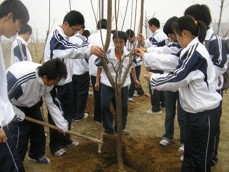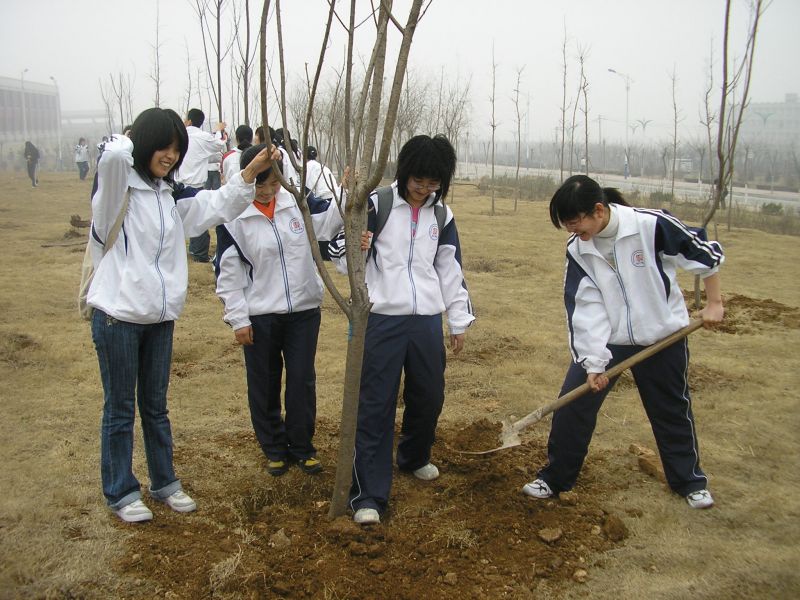 开幕式结束后,明水校区10个学院的同学们随即到凯旋门前植树。我院志愿者协会和承然环保协会的成员们积极参与到活动中来。培土、蹋实、浇水,看似简单的劳动做起来其实并不容易,学校的校工们在一旁给予亲切指导。最后,同学纷纷在自己植好的树前合影留念。