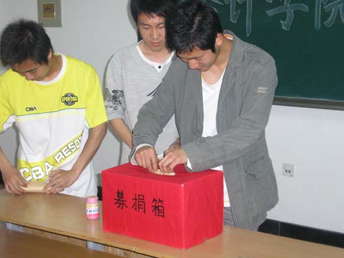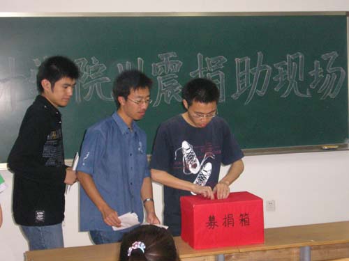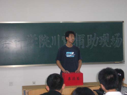 5月15日,会计学院在明水校区举行川震捐助活动。会计学院学生十四党支部、23个班级、学生会、质点通讯社、飞天艺术团、诚信社团联盟六大学生团体参加了此次募捐活动。