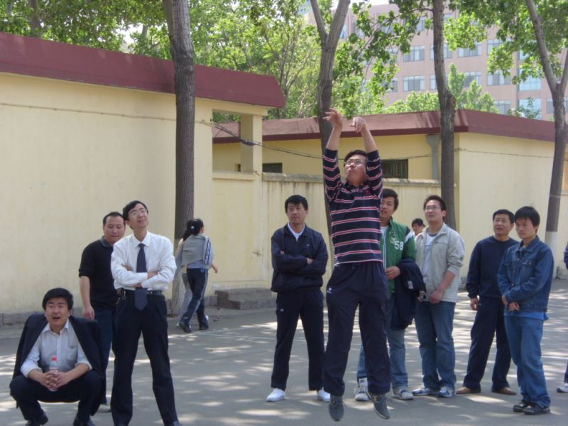 赛场上,老师们仿佛剥下岁月的刻痕,活力四射,英姿飒爽,一位老师在接受记者采访时说:“看到学生们生气勃勃,心里也不由自主地激动起来。这既是一种锻炼又是集体的交流,只要大家开心就好了。尤其当听到学生那么兴奋地为我们加油,感到特别欣慰和骄傲,仿佛又回到年轻时代。”