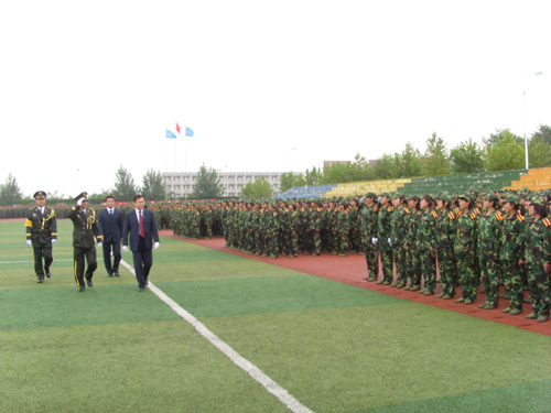 校党政领导张体勤,郝书辰,牟思伦,聂炳华,尹燕玲,张东超,崔友平,院长助理胡元木,张书学等,以及省人民武装学校校长许志强等,在主席台就座。2008级全体新生参加了大会。