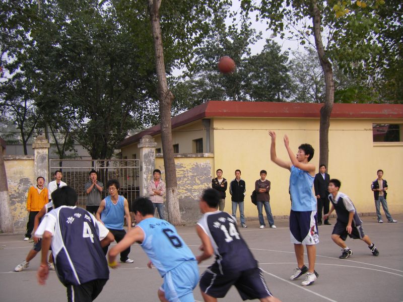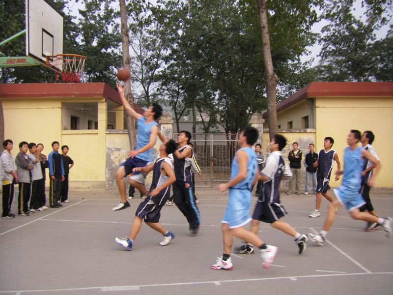 赛场上,队员你争我抢互不相让,充满斗志。左晃,右晃,过人,起跳,钩手,流利而漂亮的传球、上篮、得分,赢得了观众的阵阵叫好声。漂亮的零度角三分收入囊中,天衣无缝的空中接力直超比分,呐喊助威声响遍球场。优美的抛物线,漂亮的跳投,精彩的盖帽,更显青春的风采与张扬。