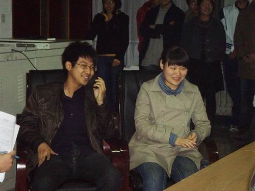 本次访谈邀请到的现场嘉宾是会计学院第二十九届学生会主席胡啸(2008年公务员考试被青岛海关录取)和会计学院第二十九届学生会副主席贾琳琳(2008年公务员考试被烟台国税录取)。为了更好的了解两位嘉宾,节目开始前首先播放了前方记者发回的场外报道——“同学眼中的他和她”。
