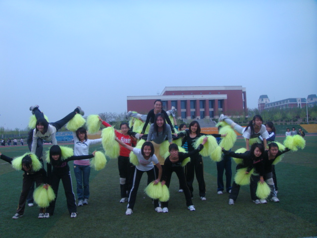 运动会将近,各种训练都在紧张进行中,我院的啦啦操队员们也不例外。据悉,本次的团体操表演共有17个学院,分别进行自编操和统编操两部分的表演。我院啦啦队由大一大二共20人组成,她们队形整齐,动作一致。为了一个动作的标准一致,她们不断的重复这个枯燥的动作,没有怨言只有乐观坚持。她们整齐的队形,统一的动作,让人赞叹。当音乐响起时,金黄色的啦啦花上下飞舞,青春活力与激情洋溢在这里得到了很好的结合。