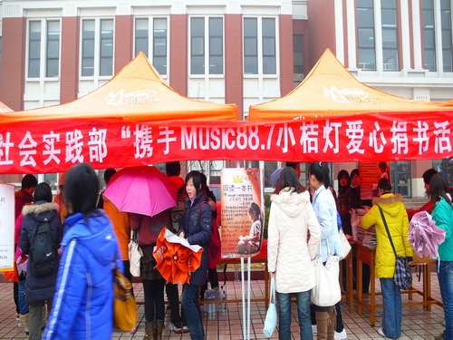 12月11日上午九时,由会计学院社会实践部与济南电台Music88.7携手举办的“小桔灯爱心捐书活动”在明水校区学生餐厅门口正式开始。本次活动主题为——“点亮小桔灯,让城市和乡村的孩子同读一本书”,活动主办方希望通过这次面向全校的爱心捐书活动,唤起同学们的爱心,帮助贫困地区的儿童实现读书的愿望。