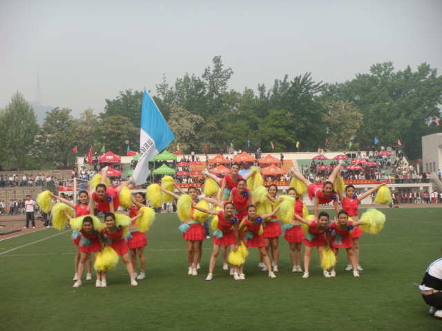 在为期一天半的运动会上,会计学院啦啦操队员们始终带着活力舞动在绿荫场上。骄阳似火,大风呼啸,她们依然活力动感。整齐划一而极具特色的动作,赢得了在场观众的阵阵掌声。粉红的衣裙,亮黄的啦啦花,组成了运动会上一道独特而又亮丽的风景线。她们头上独特且别致的彩绳,象征了会计学子们飞扬的青春,展示了会计学院运动员们昂扬向上的态度。她们带给给会计学子们以激情,带给运动员以信心,带给我们以无限的感动。虽然要持续不停的上场表演,但身心疲惫的队员们脸上却一直洋溢着微笑,如同挥洒的阳光,给予了运动健儿们最大的勇气和不断的坚持。尽管在经历了一个多月的刻苦训练后,啦啦操队员们身上到处都是伤痕,但她们始终没有怨言,是坚持与努力让她们有了现在的成功,在啦啦操比赛中一举夺得一等奖,为我院争得了荣誉。