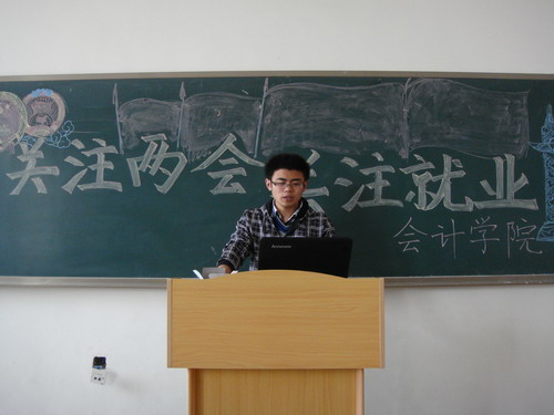 2010年3月19日下午,会计学院会计0901班在明水校区1113教室举行了以“关注两会 关注就业”为主题的班会。