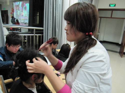 4月7日晚,由会计学院学生会女生部主办的彩妆发型设计大赛决赛在明水校区1201教室如期举行。来自会计学院、财政金融学院、工商管理学院、信息管理学院等9个学院的30位选手分别参加了彩妆组和发型设计组的比赛。校广播站明水校区负责人及会计学院、财政金融学院、工商管理学院、国际贸易学院、信息管理学院的学生会女生部明水校区负责人担当评委。
