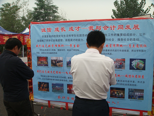 上午九点,在明水校区辅导员老师们的指导下,准备工作井然有序地进行着。十一点左右,筹备工作基本完成。考虑到近期甲型H1N1流感的严峻形势,今年会计学院迎新处特别安排了体温测量处,为前来报到的家长和学生测量体温,发现疑似情况及时上报。