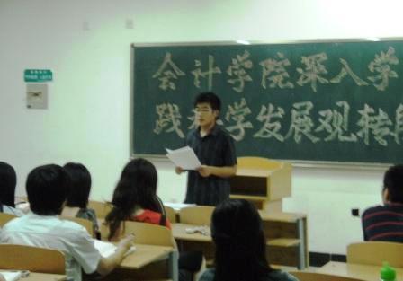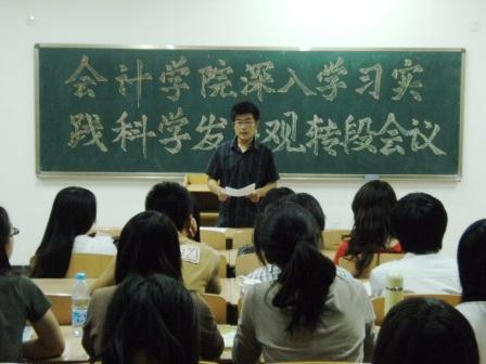 5月8日晚,由会计学院学生十四党支部组织的会计学院“深入学习实践科学发展观活动”转段会议在明水校区3303教室召开,会计学院明水校区全体学生党员及预备党员参加了此次会议。
