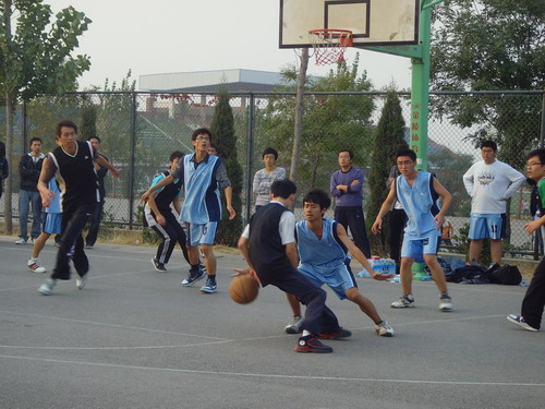 二零零九年度会计学院新生杯篮球赛四强于10月15日下午在明水校区篮球场进行了半决赛。会计新生杯篮球赛是会计学院体育部的固有活动,这项活动既增进了新同学间的交流沟通又选拔了篮球人才充实了我院篮球队。当天的两场半决赛对阵双方分别为:会计0903VS资产评估0901、会计0902VS审计0901,四支经过了前几场比赛考验脱颖而出的队伍均有不俗的实力,他们的碰撞自然吸引了许多同学到场观看。比赛场上队员积极拼抢,场下同学呐喊加油,但在激烈的比赛中,队员间不时出现失误。最终会计0902、会计0903分别以33比19、33比30战胜了各自对手。