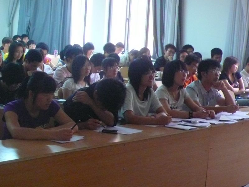 十八个候选人被均分成六组,每组成员分别进行自我简介,包括自我介绍和评委提问;紧接着是团队策划合作环节,每组有十分钟的时间介绍一项活动的完整策划,其中包括活动目的时间地点准备进行注意事项等细节。现场紧张有序,候选人敏捷的思维、巧妙地回答和精彩地阐释引发一阵阵雷鸣般的掌声。