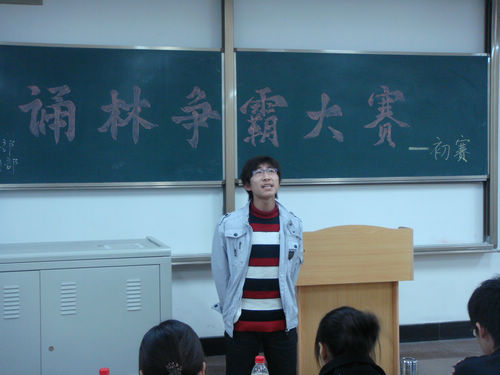 此次大赛初赛共约150余组同学参加。在正式比赛开始之前,大家都依然忙着进行最后的准备。虽然每位选手在赛前略显紧张,但是,当站在赛场上后,大家都表现的声情并茂,声音抑扬顿挫,信心十足。每位选手准备的资料题材各异,但都发挥出了最高的水平。评委们也对每组同学的演出做出了精彩的点评,为选手们提供了一些宝贵的意见和建议。