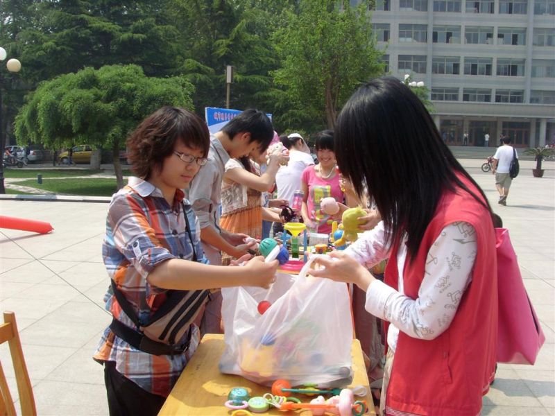 因为是星期天,校园里有不少家长陪同孩子出来玩,看到了“爱心玩具总动员”活动后,又返回家把闲置的玩具拿了出来。捐赠的玩具中有“小汽车模型”“玩具手枪”等等。另外,我校的学生也积极响应将自己闲置的衣物和玩具等拿出来捐献。“这件玩具狗,是我有一次考试不理想,好朋友送给我的,已经陪我一年多了,现在我把它也捐出来吧”,会计学院学生栾仕玲虽然有点舍不得,但还是把每天都陪自己睡觉的这个玩具狗捐了出来。短短一个小时过去了,“玩具总动员”山经站就接到了大小近两百件的玩具和衣物捐赠。