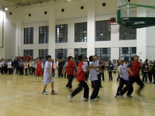比赛伊始,我院迅速进入状态,由小前锋丁原兵强攻得手,赢得开场红。随后后卫更连进两球确立了我院的领先地位。而统数院队员也毫不示弱,积极反攻,使比分出现了9:7、9:10等交替领先的局面。第一节战罢,双方以10:10战平。第二节开始,我方加强了防守,而统数院队员多次试图突破,均被我院队员成功防下,随后,统数频频失误,而我院则越战越勇,逐渐将比分拉开。由于我院默契的配合和严密的防守,使得第二节统数学院只得到两分。半场战罢,我院以19:12大比分领先。下半场一开始,统数院抓住我院防守出现的漏洞,通过突破制造多次罚球机会,将比分逐渐拉近,并将现场的气氛推向了白热化。而我院毫不示弱,及时调整,加强了攻守两端并频繁进攻,以较准的投篮逐步控制了场上局面。双方你来我往,愈战愈猛毫不相让,使得比分持续交替上升。随后,我方逐渐掌握主动权,最终以27:22领先进入最后一节的比赛。最后一节中,3号后卫王浩一个漂亮的三分投篮提起了气势,压制了对手。而此时,统数学院准备放手一搏,多用强攻冲击我方篮下造成犯规,将比分差距缩小,但我院队员则在关键时刻显示了他们冷静沉着的技战术素养,依靠默契的配合、快速的反应,一个强攻加一个快攻最终以38:31锁定胜局。