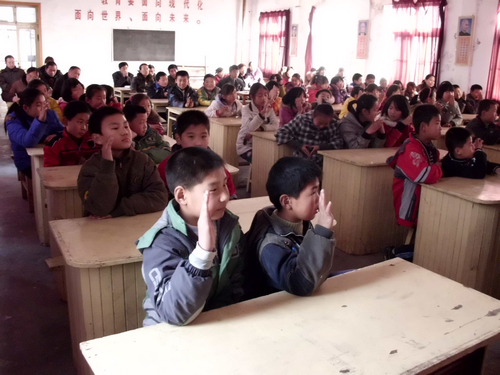 此次支教活动同心社选派了八名德才兼备的10级成员,他们分别是王勇,张丽桢,尹兰,尹立红,周凤娟,蒋树萌,刘明通,郇腾飞同学。此次活动以“感恩”为主题,对旭升小学的学生进行了一次爱的教育。校方给予此次支教以极大的支持和帮助,邀请了二十名人民教师观摩了此次支教,给予支教同学莫大的信心和鼓励。记者了解到,每一位参与支教的同学都做了充分的准备,全力以赴完成此次支教。其中,来自会计学院资产评估1001班的王勇同学,给学生们上了生动的一堂课,更是受到了老师和同学们的一致好评。首先,王勇同学利用多媒体为学生们展示了一幅幅触动心灵的图片和视频,讲解了感恩节的来源和意义,让学生们开拓了视野,了解了感恩的深层涵义,接受了一场爱的洗礼。然后,他声情并茂地为学生们讲述了发生在我们身边的感恩的故事,同学们深受启发,流下了感动了泪花。最后,王勇同学让在座的每一位同学写下最想感谢的人和最想和对他们说的话,与大家一起分享。同学们踊跃发言,各抒己见,纷纷表达了对父母养育之恩,对老师的教导之恩以及对身边的每一个人的的感激之情,树立了回报父母,建设祖国的远大志向。令在场的老师露出了欣慰的笑容。