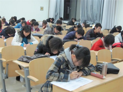 11月25日下午5点,由会计学院纪检部主办的综合测试制度考试在明水校区1104、1106教室举行。