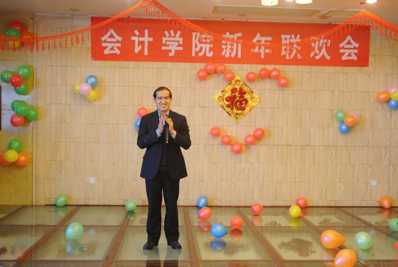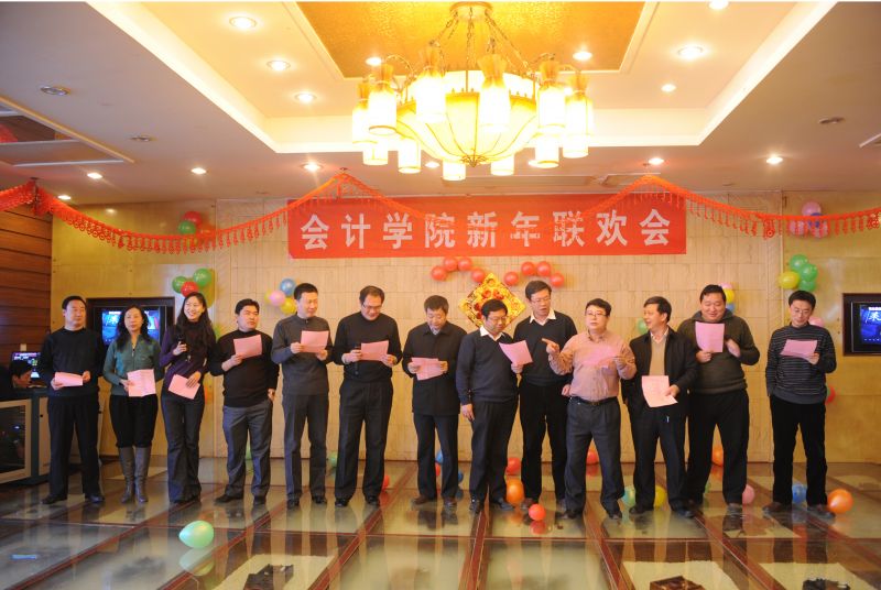 1月6日中午,会计学院2011年新年联欢会隆重举行。院党委书记张体勤教授、原院长任辉教授、党委副书记牟思伦教授、副院长崔友平教授、院长助理胡元木教授等学校党政领导、学校各综合部门领导、曾经在学院工作的老同事和老朋友、离退休老教授以及会计学院全体教职工等欢聚一堂,共迎新年。
