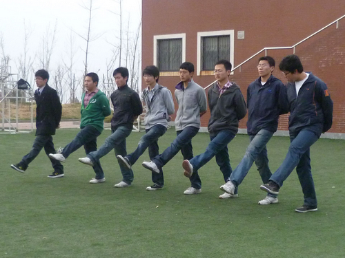 方队全部由10级同学组成,为了能取得好成绩,队员们不怕苦累,抓紧时间刻苦训练。每天早上6:45准时开始训练,7:30结束。晚上自5:05训练到6:00。虽然10级同学军训时都接受了方队训练,有一定的基本功,但是为了走出高标准的方队式,大家还是从最基础开始练起——从齐步的手型到正步的频率,从后臂的高度到脚下的步幅,每一个动作大家都一丝不苟,齐步正步更是从一令一动开始训练。同学们目视前方,跨步前行,精神抖擞。大家踏出的是从容,更是会计学院的信心。在运动会开幕前的半个月中,整个方阵将会进行集中训练,以便大家相互磨合,走出整齐的步伐。春天天气多变,早上有时天气潮湿,训练结束后,同学头上满是汗水;傍晚时而突刮大风,气温很低,大家经常被吹的脸手通红,可是参加运动会方队的同学都没有任何怨言,脸上总是洋溢着幸福和骄傲的笑容。据悉,方阵训练已经进行了3周多,每天的早上和中午分两次进行训练,并在一次次严格的训练中挑选出24名男生和36名女生参加本次运动会方阵表演。