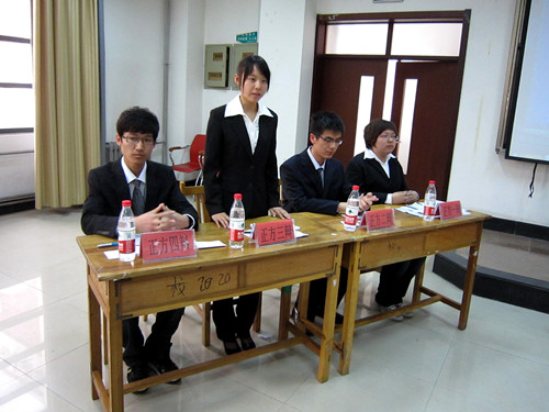 4月14日下午两点,由校学生会创新创业中心主办的2011年新生辩论赛预赛第五场在明水校区2111教室举行。本场比赛的双方分别为会计学院和经济与城市管理学院,我院10级4位辩手作为正方出席比赛。