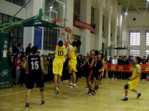 下午三点,比赛正式开始。球队双方都采用快打猛攻的战术,致使比赛一开始就立刻进入紧张僵持状态。其中,国际教育学院篮球队因罚球获得本场比赛首分。随后,会计学院篮球队队员精彩补篮,抢进猛攻,使比分以4:1赢得领先。然而,国际教育学院篮球队在其提出暂停,进行对策调整后,强势攻守,迫使会计学院频频失误。最后,国际教育学院篮球队以10:21的比分反超会计学院,结束了上半场比赛。下半场比赛伊始,会计学院篮球队在严密防守的基础上加强进攻,积极配合。只见会计学院队员采用断球快攻,杀到篮线,迫使对方犯规。紧接着,其三分球的冲击使得比分逐渐拉近,赢得场下阵阵喝彩。继而,会计学院篮球队队员们团结协作,一鼓作气强势进攻,逼迫国际教育学院篮球队频打防守,双方一度进入僵持状态。 最终,会计学院篮球队以31:37惜败国际教育学院,与本年度“流动杯”篮球赛冠军擦肩而过。赛后,会计学院篮球队队员主动与对方球员握手拥抱,展现了“友谊第一,比赛第二”的体育精神。