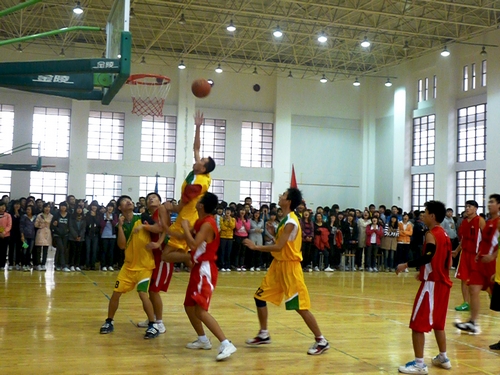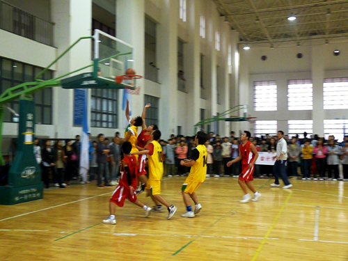 下午两点,比赛正式开始。计算机与科学技术学院篮球队率先取得控球权,并借此拿下本场比赛首球。之后,会计学院队员则奋起追赶。其中,10号队员篮下强行上篮造成对方犯规,并罚二有效。精彩的“二加一” 也使比分差距逐渐拉近。最终,会计学院篮球队队员齐心协力,反超对方,以比分26:18结束上半场比赛。在随后的下半场比赛中,会计学院篮球队乘胜追击,多次抢断并快攻得分,博得现场观众的阵阵喝彩。尽管双方队员都出现了不同程度的体力不支现象,但他们都不敢掉以轻心。此时,会计学院则依托之前良好的比赛状态,在比分上一直压制对方,使计算机与科学技术学院队难以寻到扭转败局的机会。最后,燕山校区会计学院以51:35完胜对手,成功晋级“流动杯”篮球赛四强。