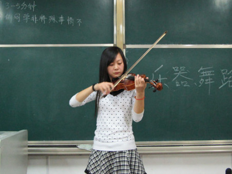 与此同时,舞蹈乐器考核专场中,近五十名同学进行了才艺展示。舞蹈类首先进行,传统民族舞与摩登现代舞交相上演,从不同侧面表现出了大一同学魅力风采。而后的乐器类考核中,大家更是轮番上阵,各显其能。既有东方古典的琵琶,也有西方现代的小提琴;既有千回百转的《梁祝》,也有风格鲜明的《野蜂飞舞》;既有民族特色的《彝族舞曲》,也有流行通俗的《老男孩》。内容丰富、形式多样的音乐为大家带来了愉悦的精神享受。