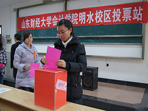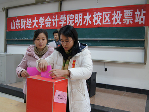 12月12日,济南市区地方人大代表换届投票选举山东财经大学选区投票工作正式开始。会计学院近6000名师生员工选民参加了此次选举,投出了庄严而神圣的一票。