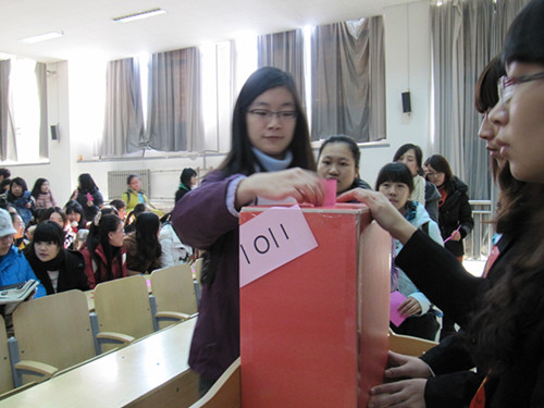 上午十点半,在工作人员的有效指挥下,各投票点以班级为单位依次开始了投票工作。现场气氛庄重严肃,每位同学都审慎的选举出自己心目中的候选人。虽然选民人数众多,规模庞大,但由于大家思想上高度重视,前期准备工作扎实充分,投票过程组织合理有效,投票现场始终井然有序,整个投票过程快速高效,每位选民都投出了公正、庄严而有神圣的一票。