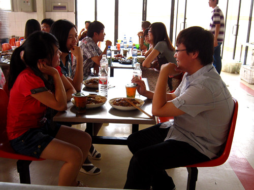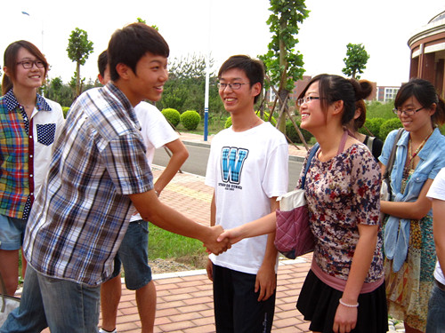 晚上六点,来自山东财政学院学生会的20名代表准时到达我校明水校区,开始了聚首之旅。友校学生会代表初到,我院学生会成员便以食会友,邀其共享晚餐。晚餐过后,两校会计学院学生会代表共同参观了校园,依次游览了凯旋门、情人坡、灯光篮球场等明水校园特色景点。游览过程中,双方就两校学生会各部的日常工作和学习生活等话题进行了亲切的交谈,并结下了深厚的友谊。活动最后,参观团队聚集于体育馆门前,在标有“热烈欢迎山财同仁来校交流”的横幅上签下了自己的名字,以此表达对未来两校合并成为山东财经大学的期许。