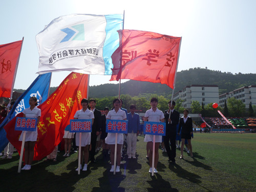 开幕式伊始,在庄严的国旗护卫队的引领下,各代表队高擎旗帜、步伐矫健、充盈着青春的热情依次入场。随后,山东财经大学党委书记郝书辰宣布2012年山东省财税机关暨山东财经大学春季运动会正式开始。升旗仪式结束后,山东财经大学校长刘兴云致欢迎词,他首先代表全校师生对到场的领导及参赛队表示了欢迎。之后,他说:“2012年是具有代表意义的一年,山东财经大学将在今年6月6日进行揭牌仪式。”并在讲话中向一直以来对山东财经大学给予关心和帮助的各界领导表示衷心的感谢。同时,他希望各代表队的体育健儿们奋力拼搏,取得优异的成绩。之后,由学生们精心准备的方阵队列及啦啦操表演将开幕式推向了高潮。