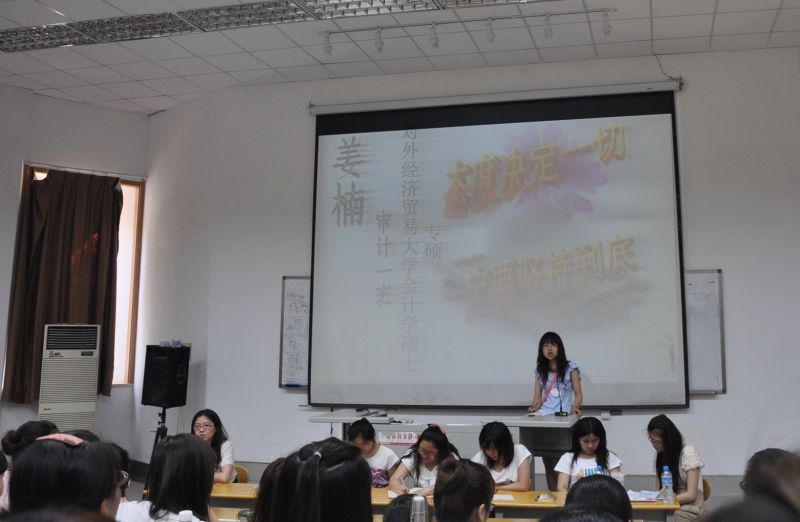 2012年5月17日,会计学院在舜耕校区第二阶梯教室举办2012会计学院考研经验交流会,本次交流会由会计学院团总支主办,会计学院学生会承办,旨在让大三的学生对考研有更加充分的认识,从而促进同学们的学习热情和考研激情。