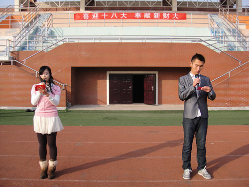 11月18日,山东财经大学会计学院在明水校区大操场举办“喜迎十八大,奉献新财大”系列活动之接力赛,来自会计学院2012级20支参赛队伍共计500余人参加了本次活动。