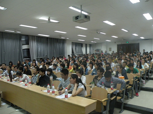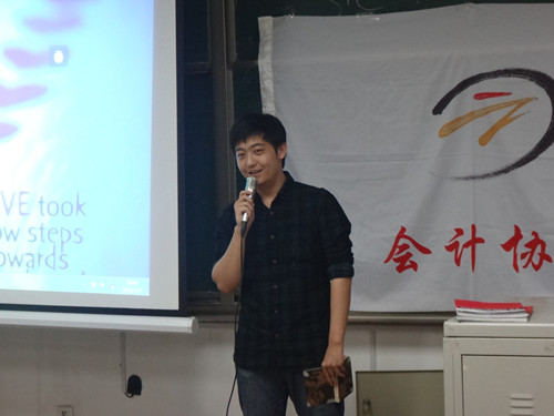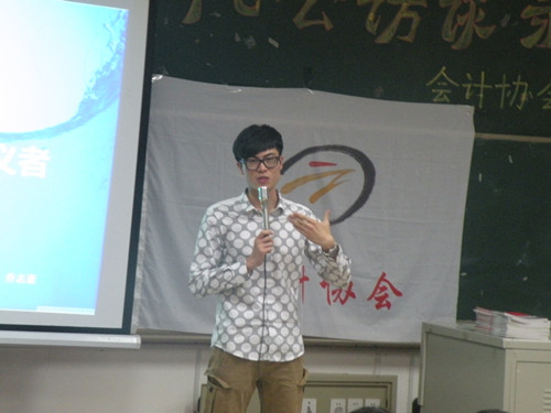 晚上六点半,访谈录在会计学院侯晓光同学激情的演讲中正式开始。访谈录由四位嘉宾分别讲述个人经历和嘉宾与观众现场互动、答疑两个环节组成。“英语达人”乔志豪同学大一创业就取得显著成绩,目前作为一名大三学子担任新东方英语培训机构的老师一职。他不仅跟同学们分享了自己大学生活的经验,还向同学们介绍了实用的英语学习技巧。踏实勤奋的徐珊不久前以419的高分考取中南财经政法大学的研究生,她着重讲述了考研的时间安排、要求以及书籍推荐等。曾赴青海支教的汤雪源同学凭借自己的雄厚实力考取了北京国税公务员,他的“能否坚持自己的梦想”一问,引发了在场同学们的深思。已被天职国际会计师事务所录用的郝世斌同学则向同学们介绍了自己丰富的实习经验,并且详细介绍了“四大”会计师事务所的有关情况,他建议同学们应该在具有清晰的自我认识的基础上再去谈自己的理想。四位嘉宾的精彩演讲对同学们的大学规划、职业规划起到了非常有意义的引导作用。而随后的答疑环节则将访谈录带向高潮,在场的同学们争先恐后地向嘉宾提问关于考研、就业、公务员和出国等问题。