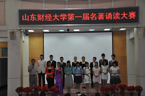 2013年5月29日,由校团委、会计学院共同组织的山东财经大学“读书点亮青春”第一届名著诵读大赛决赛在燕山校区第三报告厅举行。山东财经大学党委副书记牟思伦、工会主席杨哲、团委书记邓迎迎、会计学院党总支书记曲吉林、学生处副处长魏莉莉、会计学院党总支副书记杨扬等领导、老师以及IRadio女主播电台Lily和Helen莅临大赛现场,来到现场的还有各学院的参赛代表和各选手的亲友团同学。