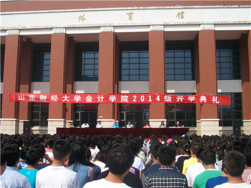 九月的山东财经大学明水校区秋高气爽,景色怡人。9月13日上午,会计学院2014级新生开学典礼在这里隆重举行。会计学院院长汪平,党委书记兼副院长张涛,常务副院长朱德胜,党委副书记崔东峰、付亚,副院长孙文刚,团总支书记兼学工办主任吕晓燕,就业办主任兼党委秘书郑大伟出席了会议。会议由付亚主持。
