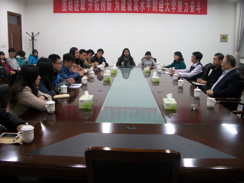 晚六点钟,座谈会正式开始。首先,刘兴云书记风趣地打破了会场的沉默,亲切地与同学们展开互动,他真诚地表示:“作为一名35年前从会计学院走出去的学生,我对会计学院有着特殊的情结和深厚的感情,今天的座谈会上,我不仅是一位校领导,更是大家的一位师兄,一位朋友。希望同学们畅所欲言,我们一起交流,一起学习。”从刘书记真挚的话语中,同学们深深地体会到他的平易近人,以及对同学们的关怀与爱护。在书记的鼓励下,同学们纷纷畅所欲言,谈自己来到山财大后的体会和感受。来自新疆的维吾尔族学生尼哈提说:“虽然我来自遥远的新疆,但这里老师的关心,同学的友爱以及宿舍的和谐氛围都让我深深体会到了山东朋友的热情好客,我喜欢这里。”会计1404班张瑜同学谈到:“刚开始来到大学时的确经历了一段迷茫期,不知道自己应该做什么,能做什么。但是随着时间的流逝,在紧张的课程和学生会工作中逐渐找到了方向,感觉进入大学更踏实了,而自己也在慢慢的适应这种大学生活。”安炳文、等同学表示,自己进入大学后参与了自己喜欢的社团,拓宽视野,增长了见识,提升了眼界,生活也变得充实。刘书记认真倾听同学们对大学的体会,他微笑着启发大家:“步入大学,我们要明白大学和中学的不同之处。大学中学习的不仅仅是知识,更多的是学习的方法,思考的方法,适应社会的方法和能力;大学里注重的是提高,自身能力的提高,个人素养的提高以及知识水平的提高。而这些都需要我们通过刻苦学习、积极实践、参与活动、与老师同学加强交流等慢慢体会,慢慢学习。”