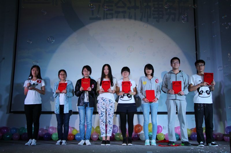 晚六点半,在四位主持人庄重而愉快的开场白中,大赛正式拉开序幕。赛场灯光璀璨,同学们更是激情澎湃。本次大赛以团队形式展开比赛,五个参赛队伍分别是“失真小分队”、“破产小分队”、“逃税小分队”、“007特战队”和“坏账小分队”。大赛伊始,五个小分队便展开第一局大战“答题我最会”的激烈角逐。10道多选,10道填空,各小分队积极思考,踊跃答题,你赶我超,不相上下,选手们出色的表现赢得了同学们阵阵掌声。紧接着,宣传部带来了技艺娴熟、画面美丽的沙画表演,缓解了之前答题的紧张气氛,使现场氛围渐入佳境。随后,大赛进入第二环节,“名词会来演”。在本环节,各小分队用话剧形式对“失真”、“破产清算”、“逃税”、“负债”和“坏账准备”5个会计名词进行生动演绎,这也是各参赛队伍得分中比重最大的板块。“失真小分队”的青春偶像剧,“破产小分队”和“007特战队”的武林外传续集,“逃税小分队”的校园爱情故事以及“坏账小分队”的日常生活剧,选手们对专业名词生动幽默、精彩不断的精心演义,引来现场观众们掌声不断,赛场气氛爆棚。在大家的期待中,比赛进入了第三环节“会眼识错误”,选手们用火眼金睛发现并改正几段视频中关于会计处理的错误,为比赛进行最后一搏。最终,由陈楷文、葛安琪、侯妮娜、孙慧等人组成的“失真小分队”夺得了决赛一等奖,其余小组分获二等奖和三等奖。
