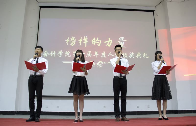 6月4日傍晚,山东财经大学明水校区清爽宜人、星空闪烁,5201会场座无虚席、气氛热烈,会计学院在此隆重举行了首届“榜样的力量”年度人物颁奖仪式。校团委书记刘奇耀、校长办公室副主任张超、学生处副处长孙丽华、会计学院党委书记张涛、党委副书记付亚、团委书记吕晓燕、辅导员郭秀娟、于苗、赵鸿雁、岳勇、沙林斌、李昌宇等老师应邀出席并担任颁奖嘉宾,与明水校区500多名同学一起,共同感受身边榜样的精神力量。