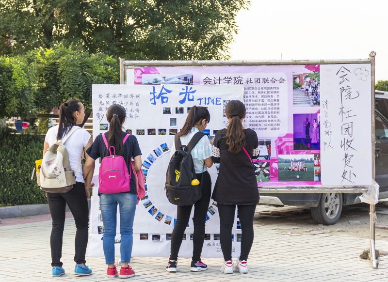 9月16日,会计学院2015级社团纳新活动在明水校区两餐厅间拉开了帷幕。阳光灿烂,而星火志愿者协会、拾光摄影社团、英语协会等会计学院16个社团的纳新活动正如火如荼地进行着。