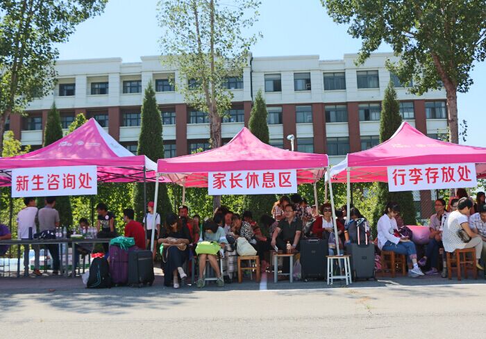 在会计学院家长休息区,家长们耐心地等待着孩子自主报到归来。其中,一位年轻的妈妈谈起了自己对山东财经大学的第一印象:“这里的教学楼和宿舍楼的风格、颜色都很独特漂亮,校园里也很干净整洁,让人感觉到很温馨,展现着山财大的新气象。”在家长们的交谈中,我们发现他们最关心的莫过于子女未来在大学中的发展。来自吉林的沈泽同学和自己妈妈姥姥在经过二十个小时的长途跋涉后一起来到财大。在采访中,沈泽的妈妈骄傲的告诉我们,沈泽从小就非常独立自强,对大学有自己的打算,但她对学习文科的女儿如何面对高等数学比较担忧。不过采访的最后,沈妈妈无不欣慰的表示:觉得学校很敞亮,山东人也非常热情好客,对孩子在这里,我很放心。
