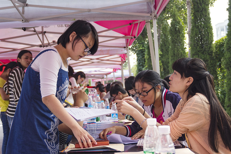 学生会工作人员及志愿者采取轮班制,保证体力与精力的充沛。他们本着高效快捷的办事原则,各司其职,坚守岗位,有条不紊地开展迎新工作,并实行流水式作业,为新生入学节省了大量的时间,提高了新生报到效率。而他们表现出的热情大方的工作态度,更是展现了会计学院亲切友好的良好形象。新生大多来自省内,部分来自省外,带着对大学的憧憬步入这所学校。一位来自湖南的审计专业大一新生在等候报到时略显腼腆,“我很喜欢学校的环境,特别是足球场”,当被问及进入会计学院的感受时,她坦言虽然对于专业学习很迷茫,但对未来仍充满期待。