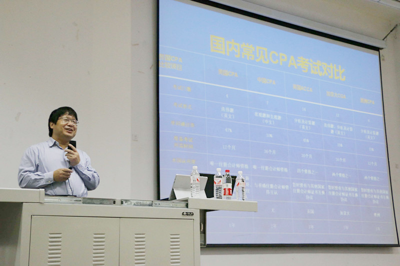 10月28日,山东财经大学会计学院美国注册会计师课程班说明会在明水5201教室顺利举行。本次说明会分两场进行,由美国Lambers CPA Review公司中国代表处首席代表赵建全老师担任主讲,会计学院全体大一新生积极参与。