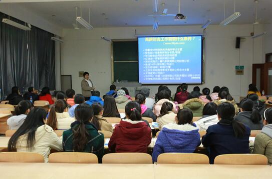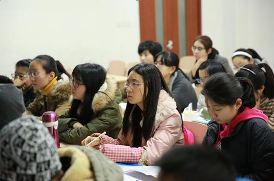 在热烈的掌声中,合作方美国Lambers CPA Review中国代表处的赵建全主任给同学们介绍了会计专业职业资格证书的种类、AICPA与高端就业,以及AICPA课程班的课程内容等。同学们聚精会神地听,不少人认真做了笔记,大家对赵老师所讲内容印象最深之处有四:一.“AICPA课程班”使用美国最新原版教材,由具有美国留学背景和“美国注册会计师”资格的老师、或著名大学资深优秀教师授课;二. 该班同学既能熟练掌握英文,又熟悉国外会计制度,再加上能通过两个国际顶级职业资格(AICPA+CMA)考试,多重竞争优势不仅能使毕业生迅速进入高端就业市场,而且能使大家在未来发展中如虎添翼;三. 由于AICPA是美国唯一的注册会计师资格,因此也使持有者具有极大的留美优势;四.AICPA和CMA两个顶级国际会计证书向用人单位释放了强烈的信号:证书持有者非常优秀。同学们积极与赵主任互动,会后纷纷提问,赵老师一一为大家做了解答。